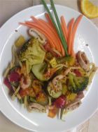 Все мы знаем о пользе овощей, о том, какие заболевания предотвращают они при регулярном появлении в нашем рационе. Здоровое питание, говорят специалисты, - это пять порций овощей и фруктов в день. Мы предлагаем вам великолепное блюдо, где многочисленная зелень сочетается с морепродуктами. Приготовьте его, и наказ диетологов по поводу пяти порций овощей и фруктов будет выполнен легко и вкусно.