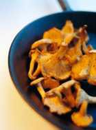 Лисички отварить в подсоленной воде и откинуть на дуршлаг, чтобы стекла вода. В кастрюле довести до кипения растительное масло, выложить лисички, перемешанные с нарезанным репчатым луком (чем его больше, тем лучше) и натертой на крупной терке морковью, тушить 1 час.