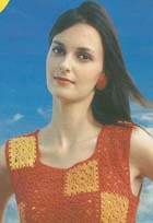 Из красного «ириса» фабрики им. Кирова 500м/100г (мерсеризованный хлопок 100%) крючком 1.5 связаны юбка и топ. В моделях использованы ажурные квадратные мотивы и техника углового полотна.