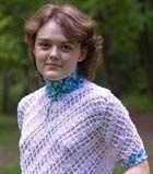 Еще один пример того, как небольшое изменение выкройки, толщины и цвета нити, а также использование ажурной каймы, позволили по уже опробованной схеме сделать совсем новое изделие. (Так выполнены три технически очень похожих, но очень разных по внешнему виду пончо). В этой белой шали использованы ленты, связанные по схеме «Желтого палантина». Для изготовления шали треугольной формы связаны ленты разной длины. Использована шерстяная нить 151 м/100 г в 4 сложения, 500 г, крючок 4.0.