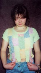 В этом топе, связанном длинным крючком по выкройке с втачным рукавом, использован уже знакомый узор "Простая плетенка" и его способность закручиваться в плотный валик. Для работы взята нить в 2 сложения: х/б "Лилия" 350 м / 75 г различных цветов + белая х/б "Ромашка" 320 м / 75 г комбината им С.М. Кирова, общий расход - около 400 г. Крючок 3,0.