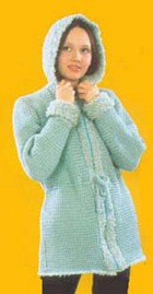 Заканчилось лето, перебираться в куртку или пальто не хочется, а на улице уже прохладно. В такую погоду будет уместен теплый вязаный жакет. Полотно, связанное длинным крючком, а не спицевым, не деформируется и не требует подкладки.