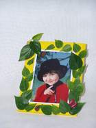 Для декора фоторамки вам понадобятся искусственные листья, желтая акриловая краска, маленький засушенный цветок и шишка.