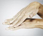 Медленно разомните каждый палец от кончика к основанию (как бы натягивая тугую перчатку). Затем, держась за кончик пальца, вращайте его сначала в одну сторону, а затем – в другую.