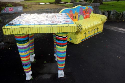 Да, здесь и вправду есть над чем подумать. Это необычное место для отдыха - дело рук скульптора Карена Кеннеди. И оно было представлено на всеобщее обозрение в 1999-2001 годах. По мнению автора, этот небольшой тандем – лавка и стол - должен входить в культурное наследие Онехунги. И нести в себе некий посыл для прохожих. Иногда лучше не торопиться и подумать, чтобы не выглядеть так, как эти лица на столе.