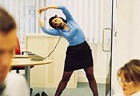 Упражнение 4. Еще одно упражнение на растяжку – на этот раз вбок. Сидя на краю стула, руки свесьте по бокам. Спину держите прямо. Вдохните, затем на выдохе наклоните корпус вбок и в таком положении на несколько секунд расслабьтесь. На вдохе снова распрямитесь. Рука, в сторону которой вы наклоняетесь, должна свободно свисать вдоль тела. Чем ближе она будет к полу – тем лучше, однако, выполняя упражнение в первый раз, не переусердствуйте. Повторите 5-7 раз.