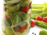 Маринованный салат из зеленых или бурых помидоров и огурцов