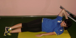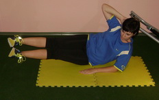 Лягте на бок, руку, которая оказалась внизу, положите вдоль тела, другую – за голову, ноги прямые (будет сложно – ноги можно будет согнуть). Теперь выполнение. В быстром темпе поднимайте одновременно ноги и корпус. Ваша опора при подъеме - предплечье нижней руки. Нужно подняться до локтя. Выполните 24 раза.