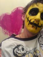 Обязательно продумайте к наряду подобающий макияж. Вот, где можно развернуться по полной программе даже обладателям самых скромных нарядов. Смело пускайте в ход не только косметику, но и гуашь, кетчуп, который прекрасно сымитирует кровь и вообще все, что не разъест кожу лица и что можно будет отмыть. Самый простой вариант – отбелить лицо при помощи очень светлого тонального крема или белой гуаши, навести темным глаза и губы, красной помадой или гуашью нарисовать «кровавый подтек» в углу рта.