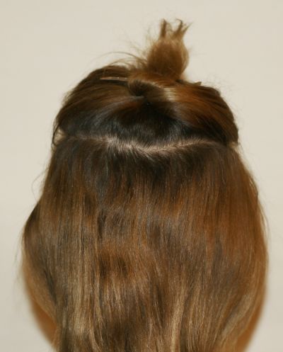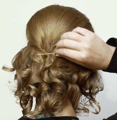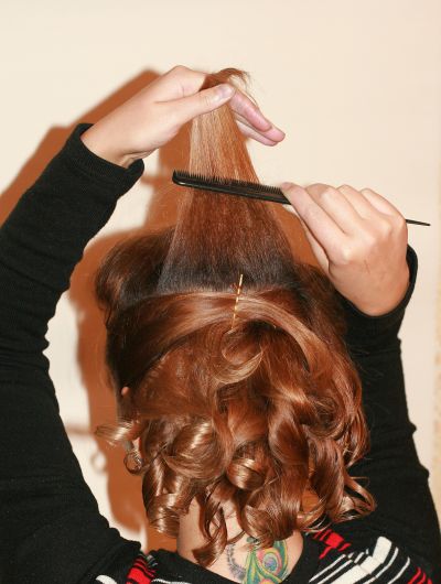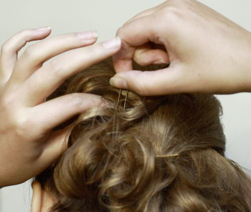 8. Все нижние волосы подкалываем вверх с помощью невидимок в произвольном порядке.