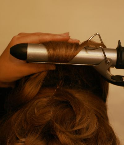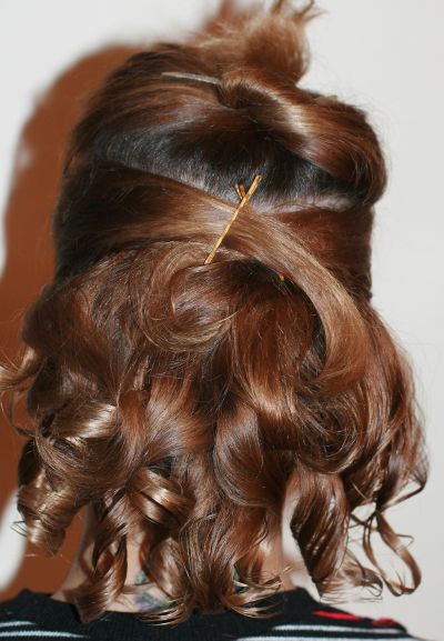 6. Концы волос с теменной зоны подкручиваем на плойку.