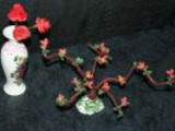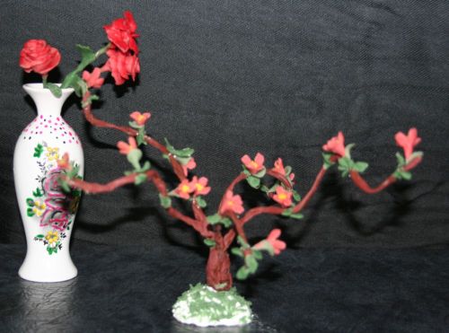 На веточки закрепляем цветы и листочки, стараясь скрыть места присоединения проволоки. Можно замаскировать эти места дополнительными листиками.