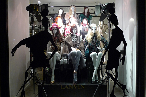 Неоднократно для украшения витрин Lanvin используются куклы. Куклы эти размером меньше привычных манекенов, но больше обычных кукол. Для потенциальных клиентов это наглядная информация о новинках сезонных коллекций, а для уличных зевак – забава и развлечение. Рождественские витрины Lanvin и вовсе просто великолепны, куклы в них оживают: танцуют, веселятся, разыгрывают забавные сценки.