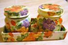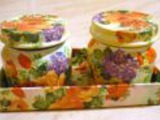 4. После того как все фрагменты наклеены, даём баночкам хорошенько просохнуть и покрываем их двумя слоями акрилового лака.