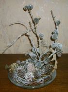 Венок с композицией располагаем в плоской стеклянной тарелке.
