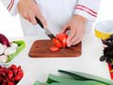 Спаржу нарезать дольками длиною около 3 см, цветную капусту разобрать на соцветия; картофель, огурцы, помидоры и мякоть птицы нарезать тонкими ломтиками, а сельдерей — соломкой.