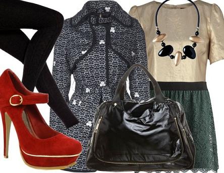 Образ дополнят платье с кружевными вставками и классическое пальто.