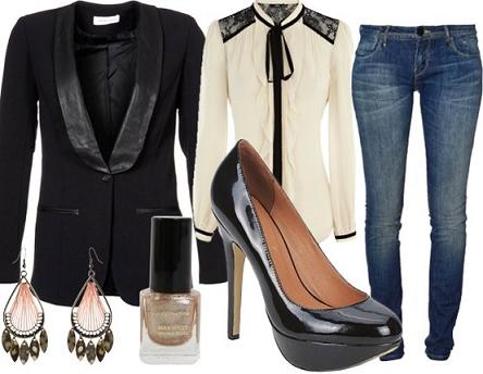 Элегантный черный блейзер-смокинг гарантирует вам внимание противоположного пола. Носите его с прозрачной блузкой в викторианском стиле, туфлями на высоком каблуке и, если хотите придать образу демократичность – с джинсами.