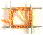Затем вязать 5-й спицей выбранный узор, при этом следить за тем, чтобы при переходе от петель одной спицы к петлям следующей они не провязывались слишком свободно. Примерно через 3 ряда кругового вязания последние 2 петли 4-й спицы вновь вернуть на 1-ю спицу. В результате на всех спицах будет одинаковое количество петель (фото 3).