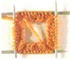 Шаг 1. Набрать нужное количество петель (простой способ набора) и распределить их равномерно на 4 спицы. Спицы с набранными петлями разложить на подложке наборным краем вверх, как на фото (фото 2).