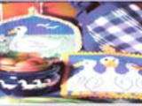 Прихватку вышить согласно схеме: контуры гуся и чаек – белым, контуры крыльев – светло-серым, клюв и лапки – жёлтым тамбурным швом, глазки – черным гладью, цветы – белым цветочном швом и узелками – жёлтым, листья – цветочным швом зелёным и траву – гладью зелёным. При вышивании разделить нить, чтобы стежки получались не слишком толстые.