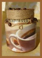 Для хранения зерен молотого или растворимого кофе хорошо обзавестись баночкой, по одному виду которой станет ясно, что в ней. Используя декупаж и несколько приёмов декорирования, сделаем баночку для кофе, которая и себе приятна, и в качестве подарка хороша.