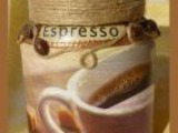 10. Вокруг зерен кофе, используя клей "Титан", приклеиваем шпагат, укладывая его змейкой, кольцами, завитками. Вот баночка и готова. Осталось лишь насыпать внутрь кофе.