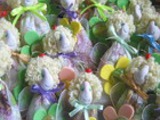 8) Сапожки феечки делаем, обматывая ножки мулине другого цвета, а из люрекса делаем бантики с бусинками на конце шнурочков, которые придадут им особое очарование.