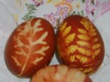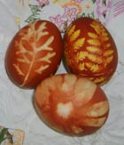 Те места на скорлупе яйца, к которым был прижат растительный «трафарет», не прокрасились или прокрасились слабо, получились копии-отпечатки.