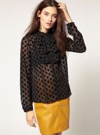 В данном случае перед вами – вечерний образ. Поэтому маленькое черное полупрозрачное платье будет хорошо смотреться с чулками в горошек, а также с туфлями, украшенными стразами. Дополнят наряд украшения с жемчугом и красная помада.