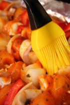 Последние 10 минут - разрезать рукав и дать печени и овощам немного «подышать».