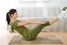 Режим выполнения – 20 повторений. На последнем повторении поднимите ноги вверх, в потолок – это будет вашим исходным положением для следующего упражнения.