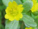 Листья небольшие, но мясистые, продолговато-овальные с тупой верхушкой, сужающейся к основанию. Довольно крупные жёлтые, чаще одиночные, цветки расположены в пазухах листьев и в основаниях разветвления стеблей.