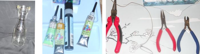 Оборачиваем проволоку вокруг бутылки, захватив её снизу в кольцо. По ходу того, как проволока оплетает бутылку, контуром наносим точечный рисунок в произвольном порядке, а вернее, в творческом. Оставляем сохнуть.