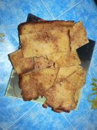 Тесто получилось довольно жидковатое. Я просто вылила его на противень и включила духовой шкаф. И дальше началось настоящее чудо. По дому пошел удивительный запах. Описать его невозможно. Пахло пекарней? Кондитерской? Мне было так жаль, когда корж испекся. Мне хотелось закрыть все окна в доме, чтобы сохранить подольше дух этой волшебной выпечки. Корж получился невысоким и очень сладким. Очень странный вкус, должна сказать. Первая нота довольно приторная, а потом остается во рту именно привкус хлебушка, а не сладость. Разрезать корж на порции следует сразу. Впрочем, как и отмыть липкий от изобилия сахара противень. Накрывать коржи не нужно, монастырский хлебушек не черствеет.
