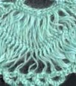 Связать шнур длиной 120 см, продеть его по короткой стороне палантина, прикрепить на концах шнура маленькие снежинки связанные по схеме 1-го ряда «Снежинки 1».