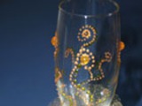 Контуром по стеклу точками повторяем узор и, дождавшись когда подсохнет первый ряд, контуром немного другого оттенка повторяем рисунок.
