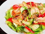 Особенно вкусно и нежно получается, если овощи не варить, а запечь в фольге. Хотя и с отварными овощами салат хорош.