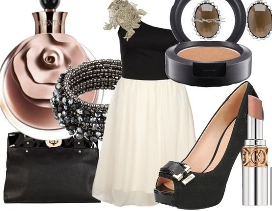 Стоит бросить свой взор на контрастное платье с асимметричным лифом. Новое прочтение классике придают интересное украшение на плече и крупный браслет.
