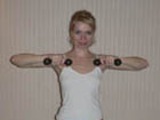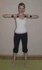 Встаньте прямо. Прямые руки с гантелями разведите в стороны ладонями наружу. Медленно, не меняя исходного положения и не опуская рук, выверните ладони вовнутрь.