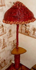 Теперь необходимо придать лоск изделию. Покупаем лак для внутренних работ, акриловый, на водной основе, без запаха. Цвет - красное дерево. Покрываем все плетёные части лаком и даём просохнуть.