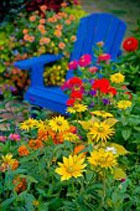 В оформлении сада большую роль играют окраска цветов и цветовые сочетания. Очень важно правильно скомпоновать одновременно цветущие растения. Основные цвета – красный, оранжевый и желтый – называются активными или теплыми. Эти цвета яркие, сильно выделяющиеся на окружающем фоне и заметные издалека. Зеленый, голубой, синий и фиолетовый – пассивные, холодные цвета. Зеленый цвет с желто-зеленым оттенком относится к теплым тонам, а с голубовато-зеленым – к холодным. Установлено, что определенные сочетания цветов могут производить либо приятное, либо безразличное, либо неприятное (режущее глаза) впечатление. Наиболее гармоничное сочетание - красного и зеленого цветов, оранжевого и голубого, желтого и синего, желто-зеленого и фиолетового цветов. Розовый, розовато-лиловый, кремовый, нежно-голубой тона успокаивают глаз.