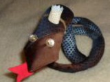 10. Если внутрь змейки вставить проволоку, телу змеи можно придать желаемую позу. Немного сложнее будет произвести набивку, т.к. проволока затруднит этот процесс. Мне пришлось в процессе набивки произвести хирургическое вмешательство – в самых узких местах галстука распороть шов, набить в обе стороны от отверстия нетканым материалом, а потом зашить отверстие.