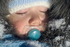 Своеобразным индикатором, сообщающим о том, не замерз ли малыш, послужит его носик и пальчики – если эти части тела теплые, значит, и малышу не холодно. Если холодные – скорее возвращайтесь домой!