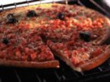 3-4 ст. ложками этого соуса полить пиццу, посыпать приправой для пиццы и отправить в разогретую духовку на 10-15 минут. Готовить при температуре 220 градусов.
