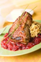 Подготовленный рулет кипятить 45 минут в свином наваре, в который добавлены горошины перца и лавровый лист.