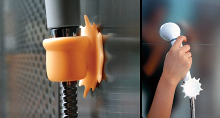 С таким держателем для душа будет удобно и взрослому и ребенку, ведь он легко крепится присоской к стене.