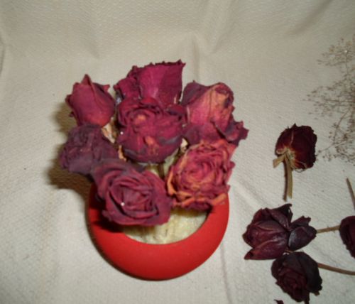 Я засушиваю розы всех оттенков, но лучше всего сохраняют свой вид розы насыщенного красного или бордового цвета. Если роза оказалась «стойким оловянным солдатиком» и прожила в букете долгую и счастливую жизнь, полностью распустилась, значит, она не подойдет для нашей цели, лепестки осыплются. Но такие лепестки можно засушить для саше или ароматических подушечек, особенно, если роза была ароматная.