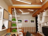 Для комнаты-студии оптимально зонирование пространства. Это может быть пол разного уровня, различные напольные покрытия, цветовые решения либо отделка различными материалами, использование открытых стеллажей.