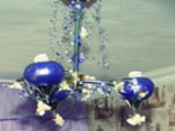 Затем бисером и бусинами дополнительно украшаем люстру по типу хрустальной, направляя гирлянды по таким же траекториям.